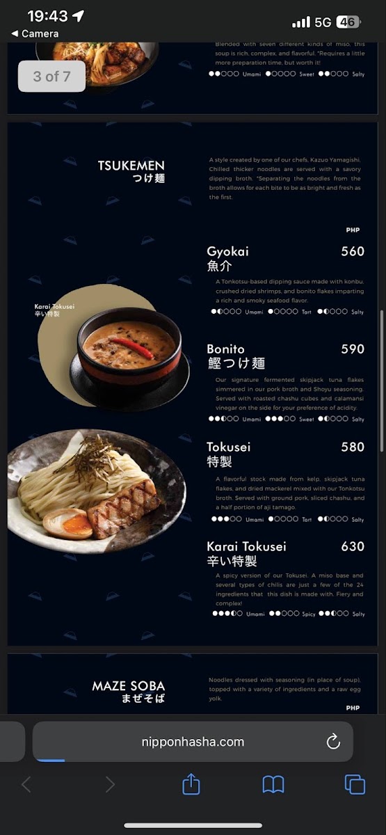 Mendokoro Ramenba Pasay delivers a menu that feels both focused and indulgent, showcasing a deep commitment to authentic Japanese ramen craftsmanship. The rich and creamy Tonkotsu stands out as a signature, offering a hearty, slow-simmered broth that clings perfectly to every strand of noodle. For those seeking variety, the combination of Ramen & Gyoza provides a satisfying pairing, balancing bold flavors with crispy, savory bites. The Bonito Tsukemen introduces a more nuanced, dipping-style experience with its smoky fish undertones, while the Seafood Ramen brings a refreshing oceanic depth that complements the restaurant’s heavier offerings. Side dishes like Sweet Tamago add a subtle sweetness that rounds out the meal, and the tender Chashu 3 pcs highlights the kitchen’s skill in preparing melt-in-your-mouth pork. Altogether, the menu feels thoughtfully curated, offering both comfort and complexity, making it a go-to spot for ramen enthusiasts seeking consistency and quality.